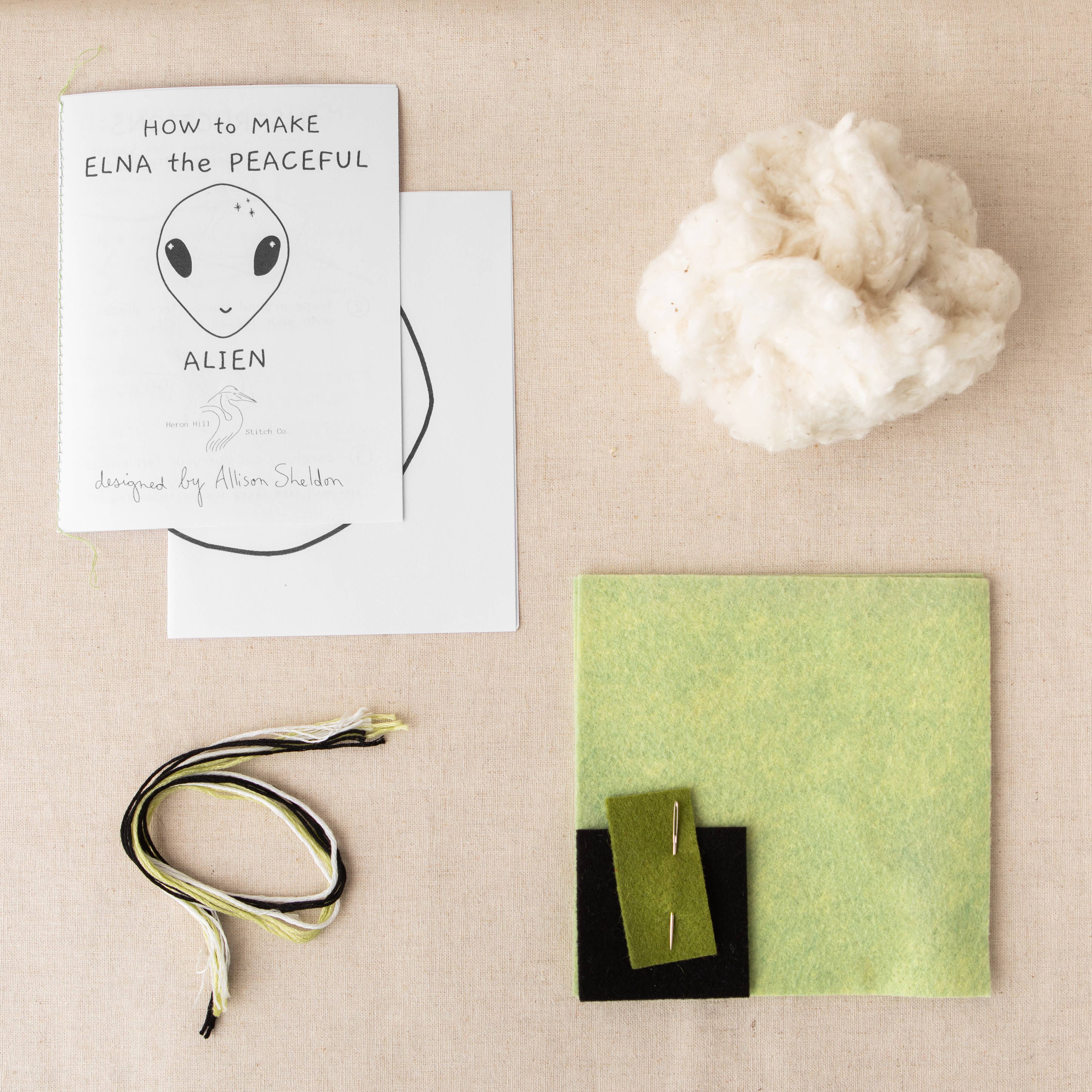ELNA- (they/them) Elna starts and ends each day with a cup of chamomile tea they brewed from their garden. They enjoy picking wild flowers, taking walks, and appreciating the beauty all around them. This kit includes: wool felt cotton stuffing sewing needle thread pattern pieces instruction booklet Appropriate for ages 7 and beyond! (Ages 5-6 with adult help)